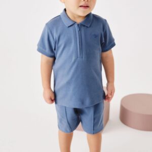 Short Sleeve Jersey Zip Neck Polo Shirt And Shorts Set (3mths-7yrs)