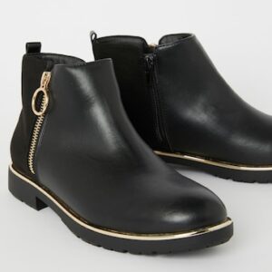 Lipsy Zip Flat Ankle Boot – Leather Look