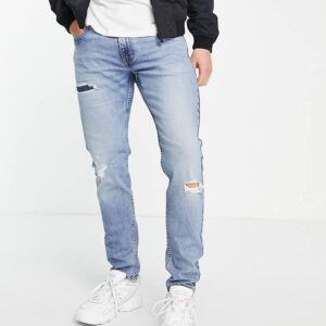 Levi’s 512 slim taper jeans with distressing in light blue wash