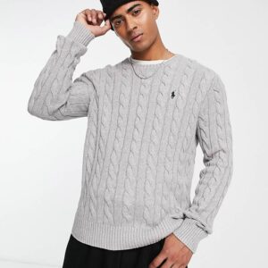 Polo Ralph Lauren icon logo cable cotton knit jumper in grey marl