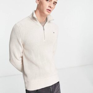 Tommy Hilfiger cotton half zip flag logo jumper in cream