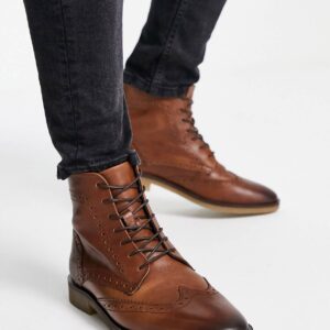ASOS DESIGN brogue boots in tan leather with natural sole