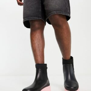 ASOS DESIGN chelsea wellington boots in black with pink contrast sole