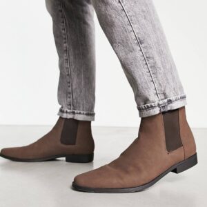 ASOS DESIGN chelsea boots in brown faux suede