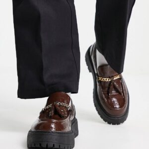 ASOS DESIGN chunky loafers in brown faux croc