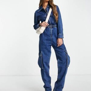ASOS DESIGN 2 in 1 cut out jumpsuit with belt in black