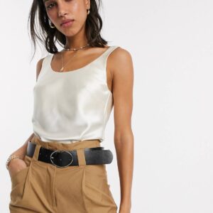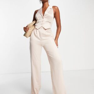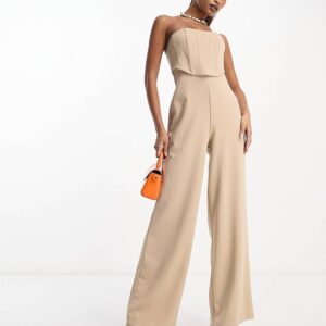 ASOS DESIGN bandeau corset wide leg jumpsuit in stone