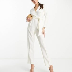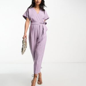 ASOS DESIGN satin 2 in 1 tailored jumpsuit in blush