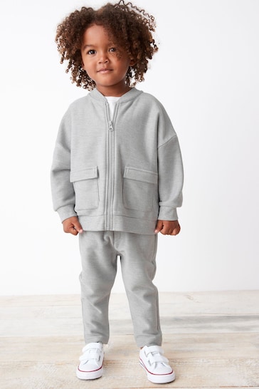 This three piece set provides an easy-to-wear and comfortable smart casual style for your little dude. Featuring a bomber style zip-through jacket, matching elasticated waist joggers and a coordinating t-shirt.