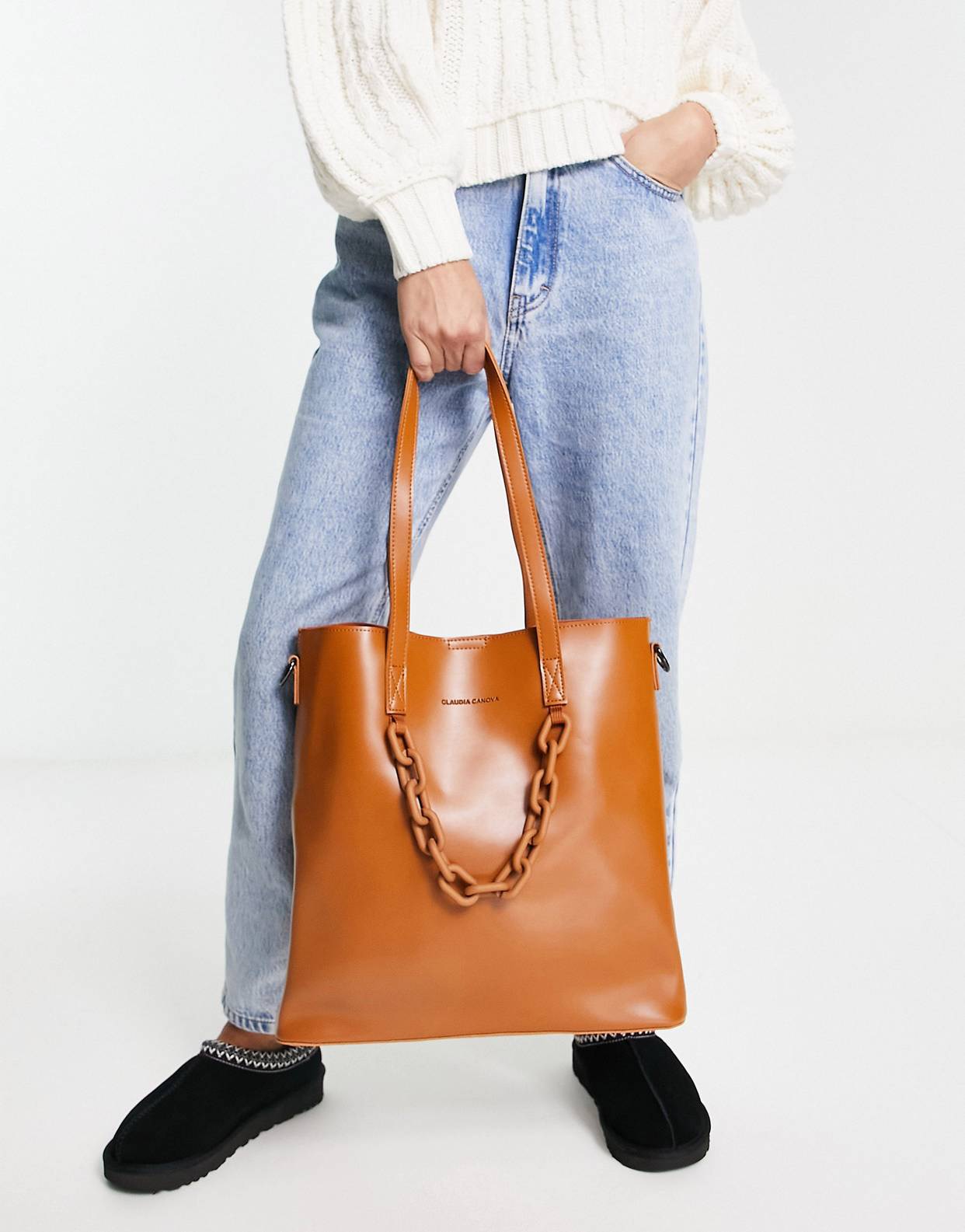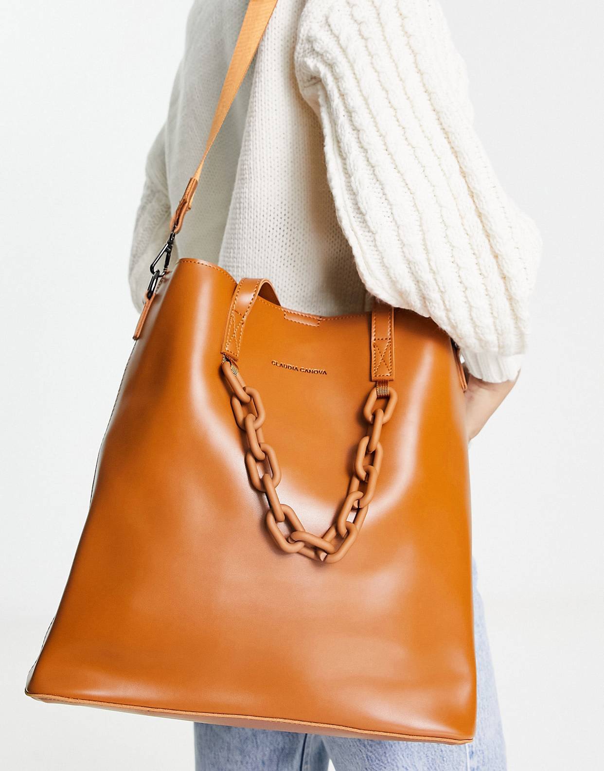 Be the first to review “Claudia Canova large chain shoulder strap tote in tan”