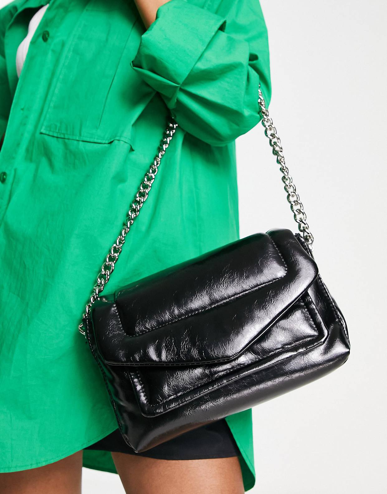 Faux leather: glossy, patent finish